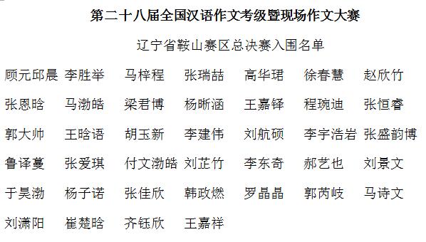 第二十八届全国汉语作文等级评价大赛暨现场作文大赛辽宁鞍山赛区入围名单